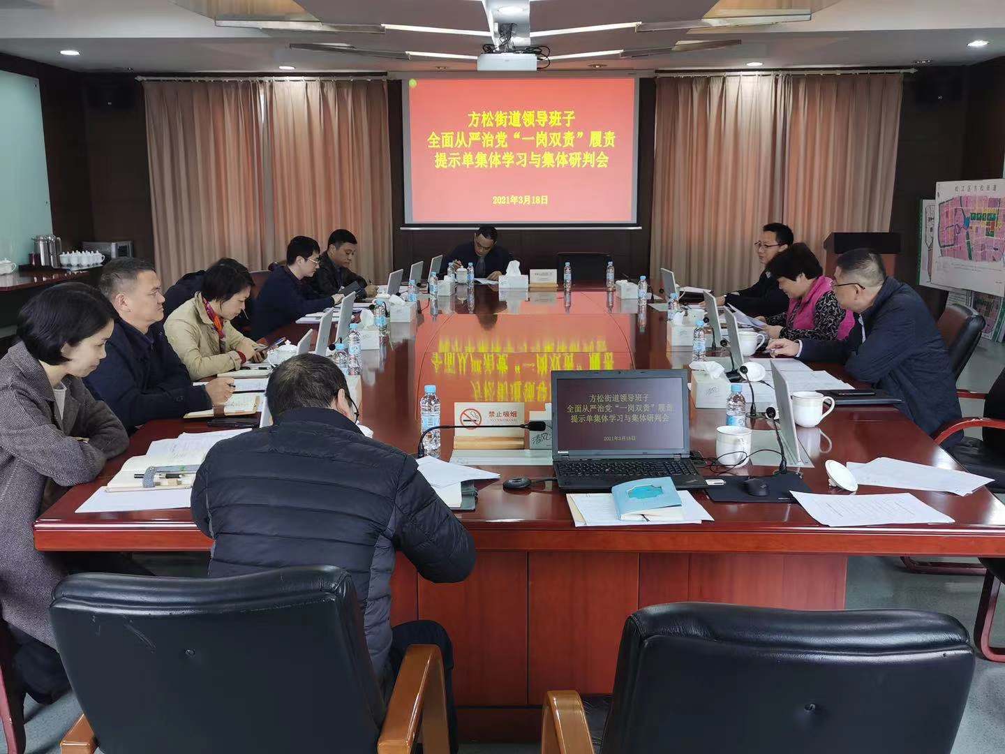 根据《关于组织开展全面从严治党“一岗双责”履责提示单学习等通知》要求,方松街道党工委以召开会议的形式专题学习履责提示单的内容,街道党政班子全体成员高度重视,将学习和践行提示单内容作为本年度重点工作抓紧抓实,对照菠菜365定位_APPBET365_正版约彩365软件、专项检查反馈的问题以及自身岗位职责分析研判,明确下一步整改举措。 高度重视,专题学习履责提示单。方松街道召开党政班子会,由街道党工委书记张迎春带头,对全面从严治党“一岗双责”履责提示单进行了全篇通读。其中,着重强调了履行“一岗双责”的重点事项,要求街道党政班子成员做实实地调研、带队检查、领学活动、集体廉政谈话等六项任务,不拘泥于形式,不局限于次数,确保党风廉政建设责任贯穿于本职工作的方方面面;再次重申了“四责协同”、“抄告回复”等重要概念,要求党政班子成员加强对分管领域和联系单位推进全面从严治党等工作的领导、检查和督促,及时做好抄告回告;深刻剖析了三个警示案例,要求各党政班子成员以案为鉴,落实好监督责任,对苗头性、倾向性问题早提醒、早处置,将违纪违规行为遏制于初萌。 深入研判,找准履责存在问题。在问题集体研判阶段,街道党工委提前整合梳理了《方松街道党工委主体责任、党政班子领导履行“一岗双责”问题清单表》,张迎春首先对自身存在的履责问题进行自我剖析,再结合2020年度其他党政班子成员履责报告中自查自纠的问题,紧扣区委菠菜365定位_APPBET365_正版约彩365软件、专项检查发现的重点问题,对其他党政班子成员履行“一岗双责”情况逐一进行了点评,并提出了意见建议,梳理下一步整改工作思路。 对标要求,认真履行“一岗双责”。街道党政班子其他成员深入学习了“履责提示单”的内容,主动认领了履行“一岗双责”问题清单,现场查摆了区委菠菜365定位_APPBET365_正版约彩365软件、专项检查中涉及自身分管领域的问题,认真聆听了点评意见,并结合分管职责,明确了当前履责存在问题的整改思路,做到了谈问题实事求是,谈原因深入细致,谈举措紧扣实际。